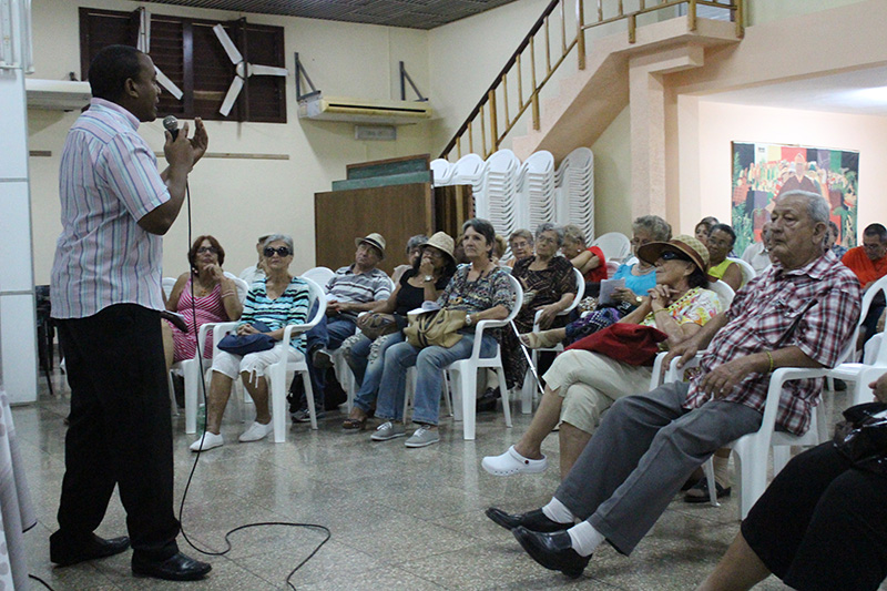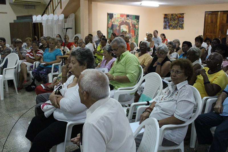 En la tarde tuvo lugar un conversatorio sobre Protección legal de los ancianos, facilitado por el Licenciado en Derecho Ernesto Larrondo. Participaron representantes de instituciones y proyectos sociales involucrados en la atención al adulto mayor, el Club de los 120 años, especialistas de los diferentes equipos multidisciplinarios del MINSAP, especialistas de la Red de Educadores populares en la provincia de Matanzas y algunos líderes de proyectos en las iglesias de la localidad. Hasta el momento contamos con un total de 72 participantes.