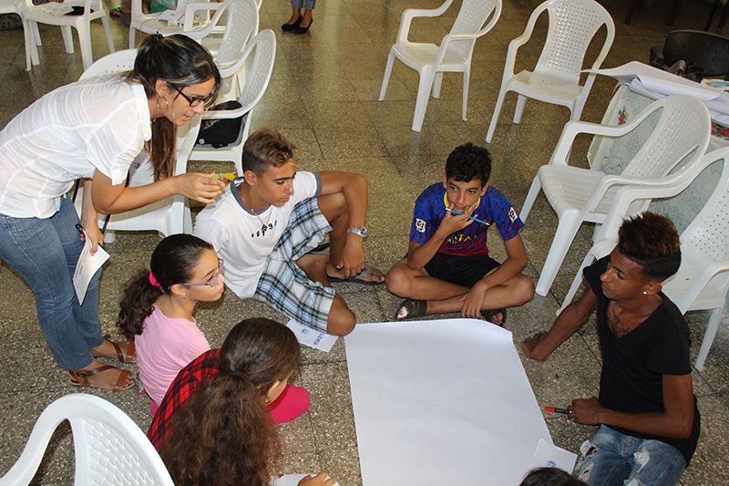Facilitadora Laura Bueno González ( de pie) orientando la actividad