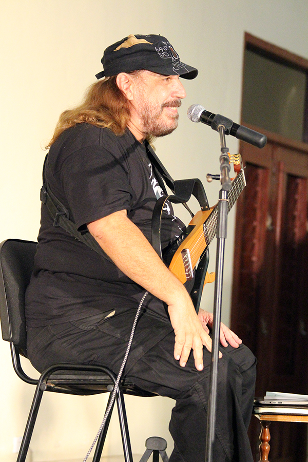 Después de tal preámbulo, el público pudo deleitarse con las fabulaciones cubanísimas y picarescas de Frank Delgado, la de sus letras y la de las historias o experiencias narradas. Un momento conmovedor fue la rememoración de Santiago Feliú, su amigo y compinche en el ejercicio de la composición e interpretación musical, a quien le dedicó un tema.