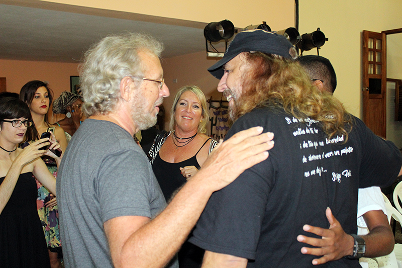 Luis y Loli, músicos de Nuestra América, comparten con Frank Delgado (izquierda)