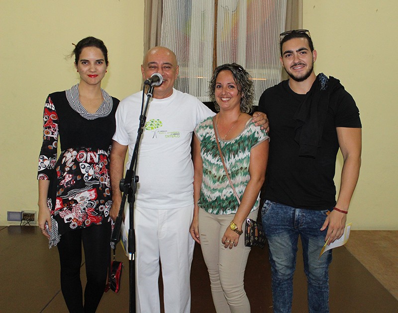 Coordinador del CID, Diego Valdés (al centro) con los artistas Érika Eva (derecha), Yanet Martín y Reinier Mayor