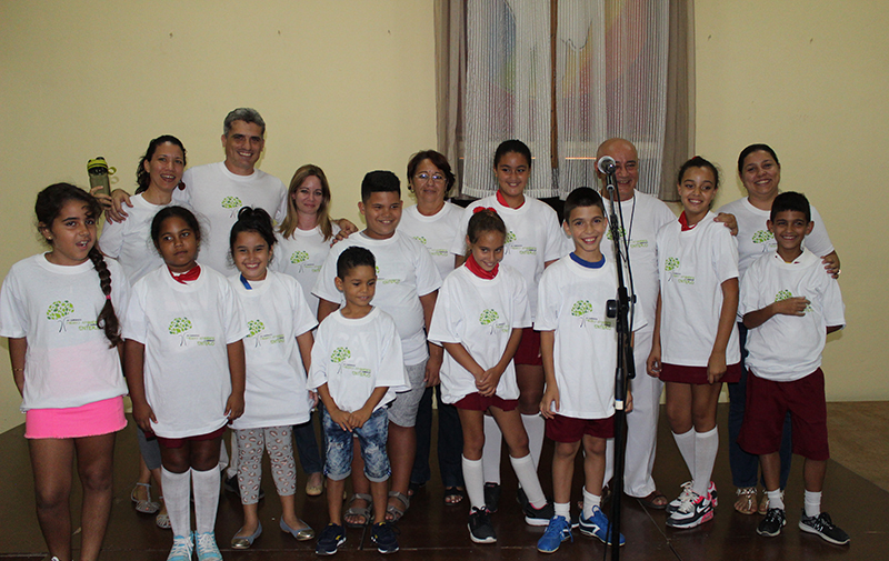 Niños premiados en la rifa, junto a trabajadores del CCRD-C
