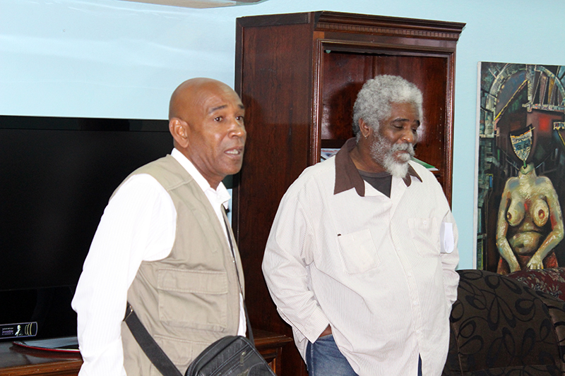 Alberto Abreu (izquierda) presentando a Víctor Fowler