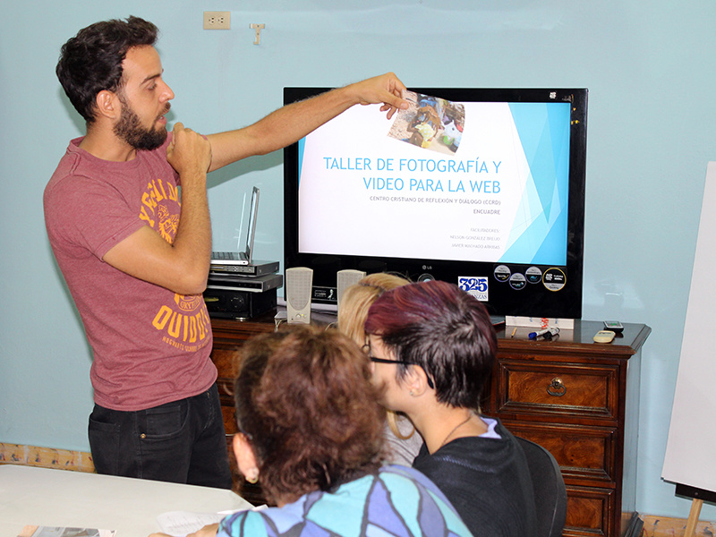 Entre los días 9 y 12 de mayo se efectuó en el Centro de Información y Documentación del CCRD-C un taller de fortalecimiento institucional sobre fotografía y video, facilitado por Nelson González Breijo y Javier Machado Arribas, colaboradores del Toque. Con el común propósito de incidir en el perfeccionamiento de la imagen y visibilidad de nuestra institución, acudieron representantes de sus distintos departamentos y programas.