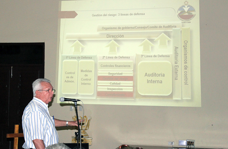 El seminario para actualizar a todo el colectivo laboral del Centro Cristiano de Reflexión y Diálogo-Cuba sobre el tan necesario tema de control interno, se desarrolló en la mañana del 26 de abril. Antonio González Gordillo, responsable de esta actividad, explicó cuestiones que deben ser conocidas y aplicadas de manera consciente, sistemática e integrada. Los conceptos de Plan de Prevención, riesgos y chequeo de los cinco componentes del control interno se analizaron y ejemplificaron. Este seminario forma parte del fortalecimiento de nuestra institución.