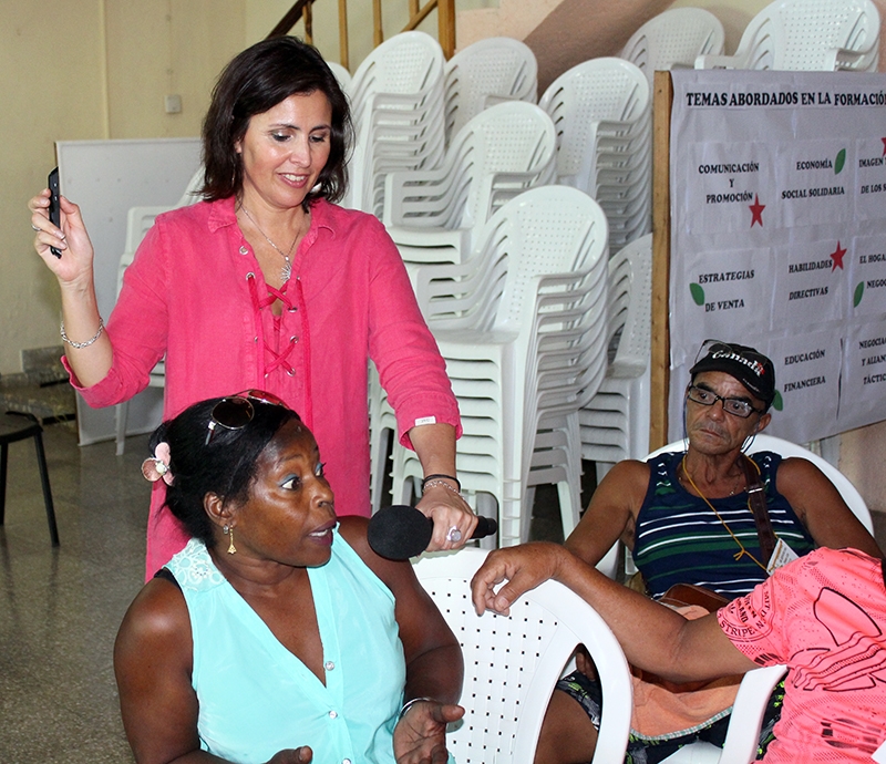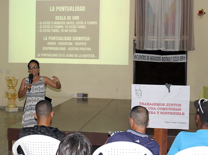 Otro tanto ocurrió con la entusiasta emprendedora, ahora desdoblada en facilitadora Nayvis Díaz Labaut, líder de Vélo-Cuba, quien propició un ambiente de diálogo y explicó lo necesario de estudiar a los clientes; así como de la higiene, cuidado de la salud y hábitos alimenticios de un ciclista. Sus vivencias le sirvieron de base para comentar cómo es su relación con sus trabajadores y con los mecánicos de bicicletas. También insistió en la importancia de personalizar cada emprendimiento y estrechar vínculos sostenibles con los beneficiarios de sus servicios, para lo que basta aplicar unas pocas prácticas que ayudaran en creación de una identidad: descuento a los niños; promocionar otros emprendimientos; reparación de sillones de ruedas, entre otros.