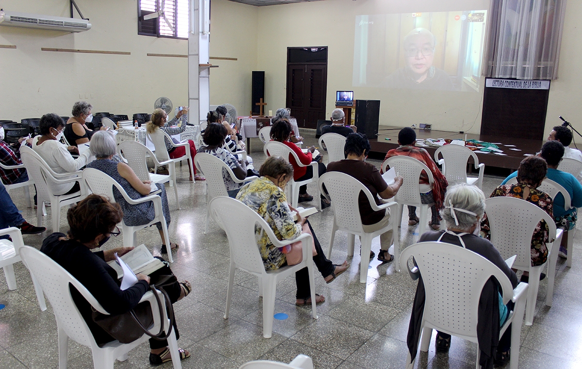 Inicia este evento en nuestro centro con la participación de representantes de varias denominaciones cristianas: Episcopal, Presbiteriana Reformada, Iglesia de Cristo, Adventista del Séptimo Día, Bautista, de los municipios Matanzas y Cárdenas. Ellos forman parte de grupos pequeños que se reúnen sistemáticamente para el estudio comunitario de la Biblia.