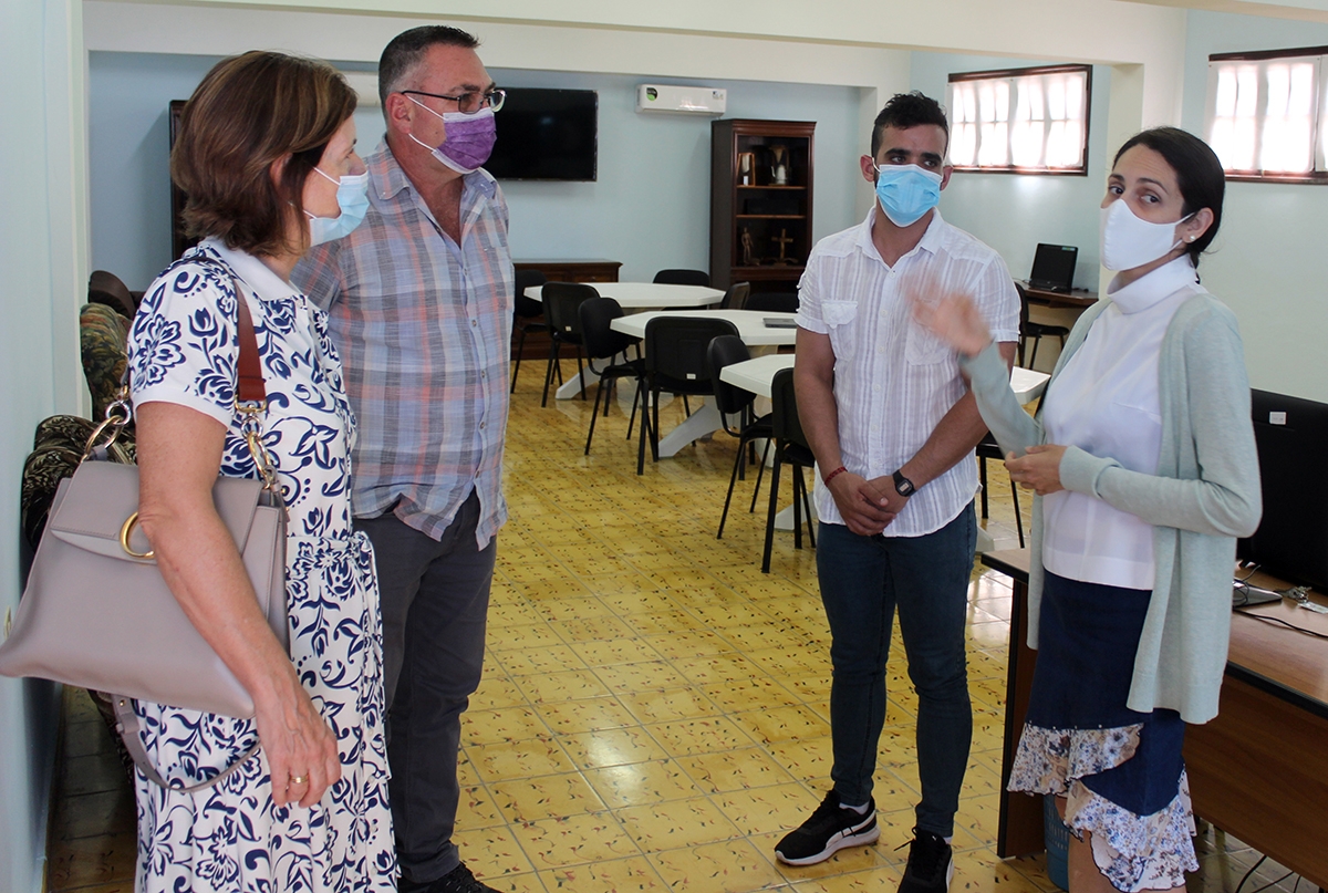 El jueves 17 de marzo recibimos la visita de la embajadora de Noruega en Cuba, Beate Stirø y del segundo secretario Erlend Skutlaberg. Tuvieron un provechoso intercambio con Juan Carlos Rodríguez, vicedirector de nuestra institución, Yenia Pupo, coordinadora del Programa de Atención Psicomunitaria y Sarahí García, coordinadora de la Pastoral para la Reflexión y Diálogo, para conocer sobre el desempeño de las diversas áreas y acerca de las estrategias aplicadas, tras el largo proceso de la pandemia COVID-19, para sostener el trabajo comunitario.