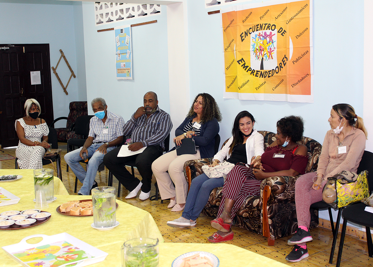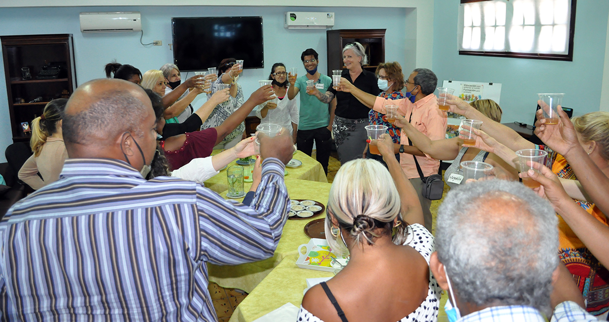 En el Centro Cultural de nuestra institución coincidieron facilitadores y emprendedores que han estado desde los primeros talleres de capacitación, los que llegaron más adelante y hasta quienes recién inician. Resultó en un intercambio desde la resiliencia y el cómo han tenido que reinventarse o simplemente insistir, con buenas y renovadas vibras, para sostener el trabajo de años en un negocio, una finca o, como solemos decir, un timbiriche. No faltaron los dulces típicos cubanos, cortesía de los asistentes, un vino artesanal elaborado con flor de Jamaica y con base de guarapo (jugo de caña de azúcar) y la alegría de reencontrarnos para proyectar nuevos planes de colaboración.