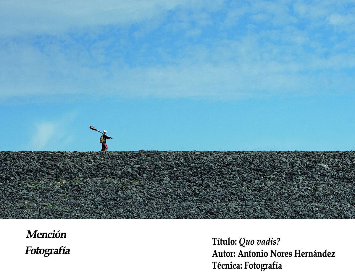 Mención a Antonio Nores Hernández, por la obra Quo vadis? Por el brillante uso de un título que es marco ideal de una imagen sobria y desaturada de elementos superfluos, la soledad del individuo ante decisiones personales y su elección de postura social.