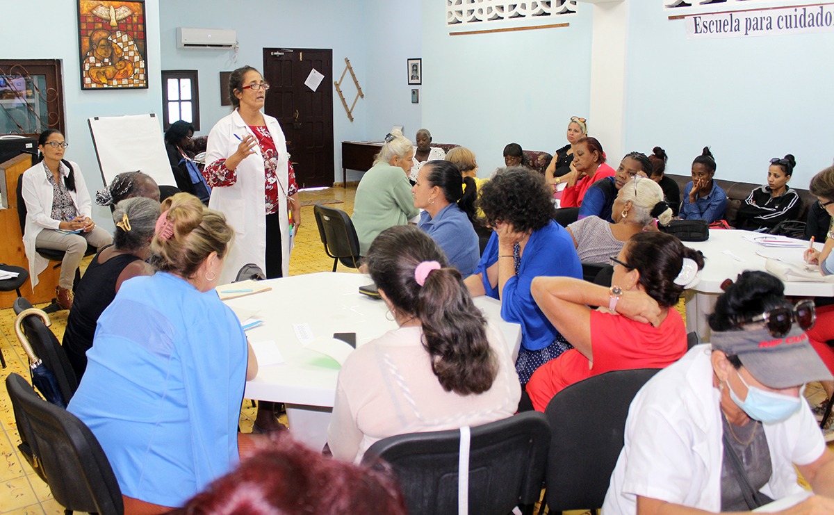 Facilitado por las doctoras en Medicina General Integral (MGI) y especialistas en Gerontología y Geriatría, Yudileyvis Santana García, Yenisleidy Fonseca León y Dunia J. Díaz Camellón, tuvo lugar en el CCRD-Cuba la Escuela para Cuidadores.