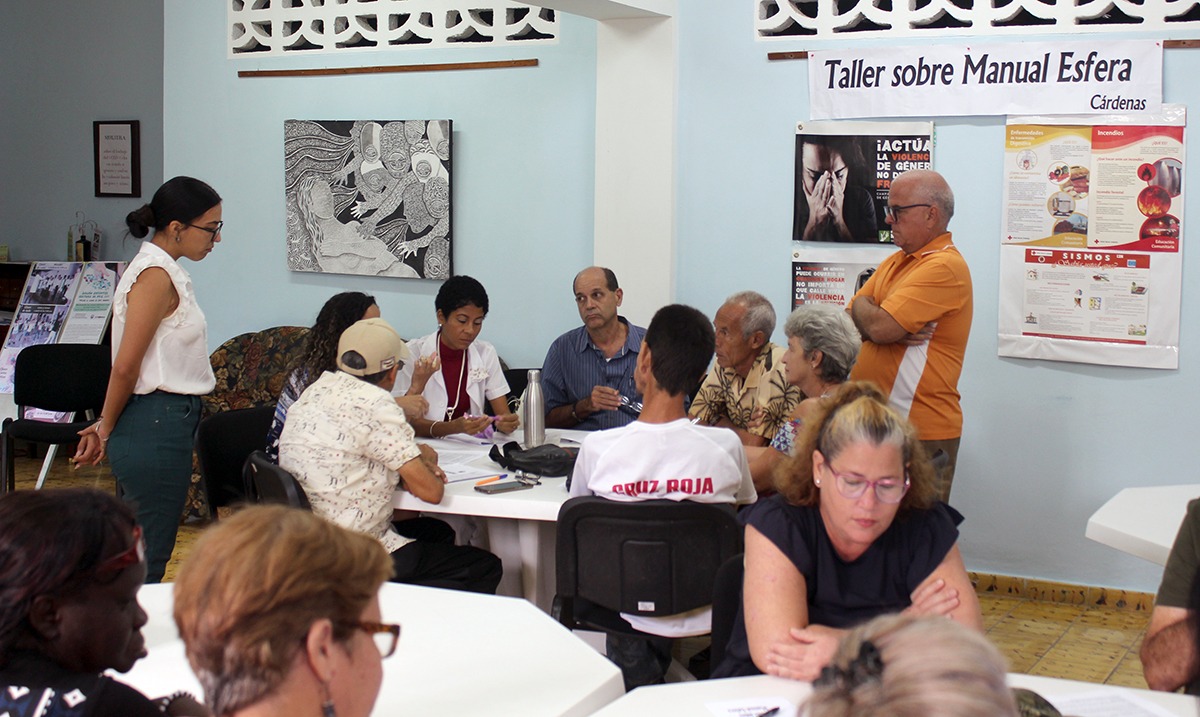 Participaron representantes de instituciones provinciales y municipales: de Salud Pública y de la Cruz Roja, de distintas comunidades de fe, del Centro de Servicios Ambientales de Matanzas (CITMA), Ministerio de Educación Superior y Municipal, de la Defensa Civil, de la Oficina de Proyecto de Desarrollo Local. Juntos se dedicaron a profundizar en los capítulos esenciales y técnicos que conforman el “Manual esfera” y a evaluar sus peculiares roles ante una contingencia, así como los planes ya elaborados en función de facilitar, distribuir y manejar los recursos, con la constante que domina este proceso: una respuesta humanitaria basada en principios y derechos.